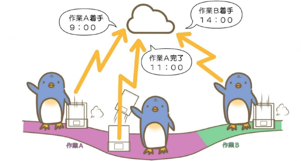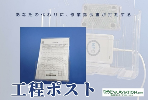 作業進捗(工程の着完)を自動で記録する「ポスト」です。電子タグを付けた作業指示書を工程ポストに投函すると「作業着手」、抜けば「作業完了」を自動的に記録します。